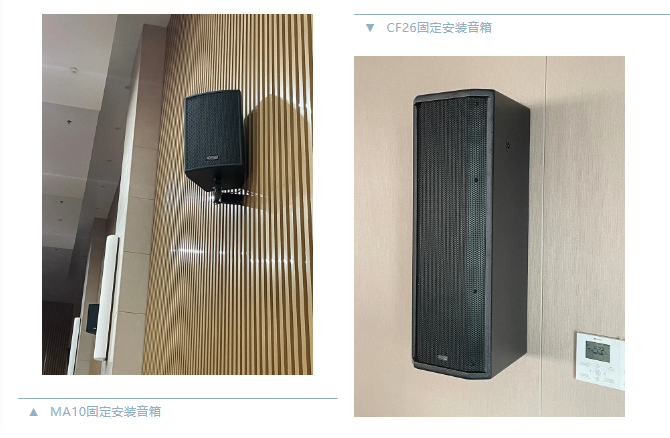本次項(xiàng)目中兩間多功能報(bào)告廳,宴會廳的主擴(kuò)聲系統(tǒng)均采用Mission Pro(英國美聲)MA系列音箱系統(tǒng),新聞發(fā)布室、情景實(shí)訓(xùn)室及9間教室,均采用CF系列固定安裝音箱系統(tǒng),會議室采用CV6-16吸頂音箱,本次項(xiàng)目所有場景的驅(qū)動揚(yáng)聲器系統(tǒng)皆采用MI系列數(shù)字功放。