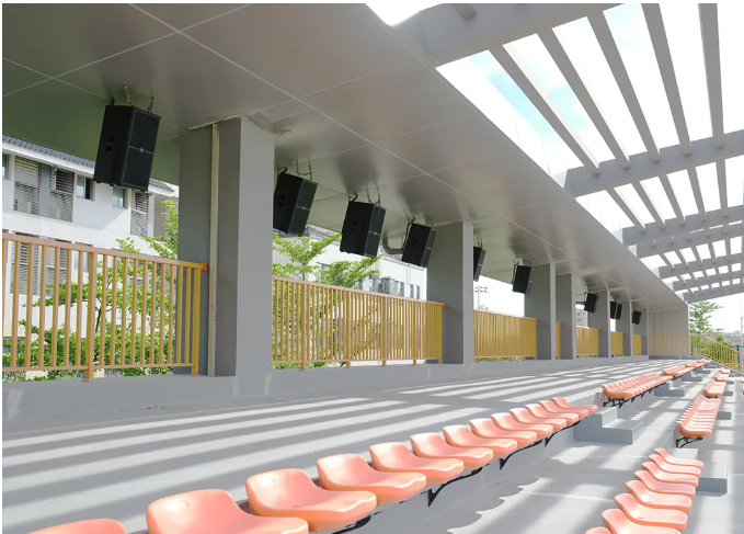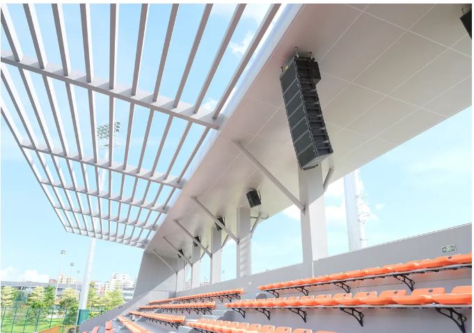 訓(xùn)練場地 本項目訓(xùn)練場地分為三個,在系統(tǒng)設(shè)計期間,考慮到三個場地的設(shè)計結(jié)構(gòu)基本相同,最終采用相同的訓(xùn)練場館擴聲系統(tǒng),使得整個深圳市青少年足球訓(xùn)練基地擴聲系統(tǒng),無論是從視覺上還是聽音效果上,都達(dá)到了完美的風(fēng)格和諧統(tǒng)一。 訓(xùn)練場地一和訓(xùn)練場地二的主擴聲系統(tǒng)采用了32只MISSION的MSW系列全頻防水音箱。兩個場地各采用了16只MSW9012F和MSW9015F的防水線陣系統(tǒng),分布懸掛于兩個場地觀眾席上方覆蓋全場,各搭配8臺MI1300的功率放大器,將MSW系列全頻防水音箱性能發(fā)揮到極致。 訓(xùn)練場地三采用了16只MSW9012F全頻防水音箱固定安裝于墻頂,MSW系列的安裝方式非常靈活,可根據(jù)不同的項目情況進(jìn)行靈活安裝,適合各類墻面安裝應(yīng)用,同時搭配8臺MI1300的功率放大器,使其聲音能量均勻覆蓋聽音區(qū)。