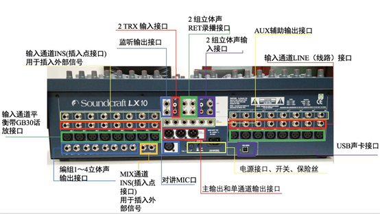 新一代的LX10沿用了已成為行業典范的Soundcraft MH3與MH4的4段參量均衡器和GB30話放;且在上一代的基礎上增加了5種新的實用功能,輸入通道每通道獨立隨信號強弱變化而改變顏色顯示的LED指示燈、輸入通道單獨+48V幻象電源控制、內置USB音頻接口聲卡直接連接你的數字音頻工作站進行音頻錄音與回放、增設多功能USB 5V電源接口、支持將Group 編組信號發送至主輸出混音母線MIX和主輸出混音母線MIX信號發送至C單通道母線兩種信號路由方式式。這些都極大的提高了我們實際應用是的便捷性。