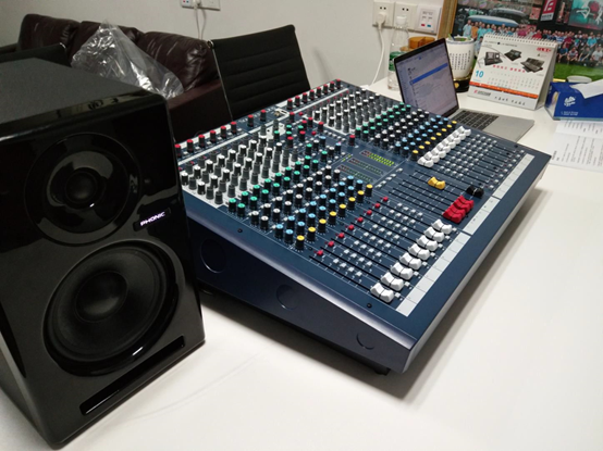 圖14:看了那么久,現在連接起來試聽一下,搭配的是PHONIC 8A黑色鋼琴漆監聽音箱,輸入方式選擇了手機線路(插的是平衡話放接口)輸入和電腦USB線直接連接臺子自帶聲卡的數字輸入兩種傳輸方式。音質一如前幾代一樣完美,且聲音也非常干凈,離解析度這么高的監聽音箱這么近,沒有聽到噪音,臺子的線路設計及工藝把控還是不錯的。