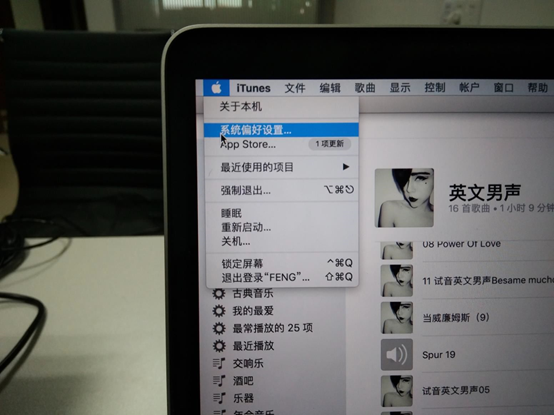 圖16:連接完成后,點擊屏幕左上角??標志,選擇系統偏好設置,點擊進入系統偏好設置界面。