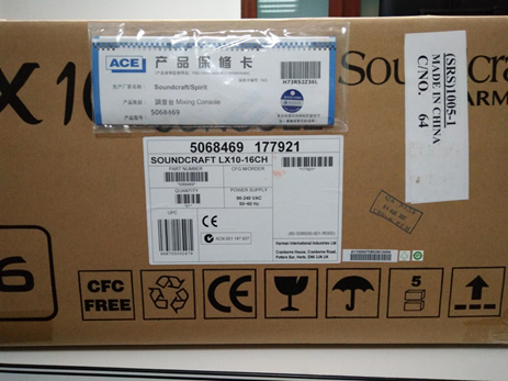 圖3:包裝箱側面的產品條碼及總代理ACE出具的產品保修卡,請仔細核對,經典產品市面水貨比較多需留意,另目前此款產品的國內總經銷為廣州市銳聲燈光音響器材有限公司,一家專做國外知名品牌的代理專業音頻公司。