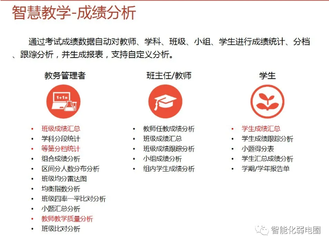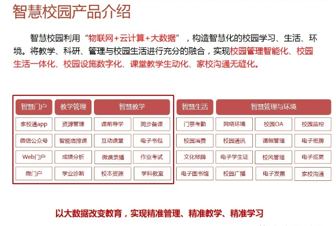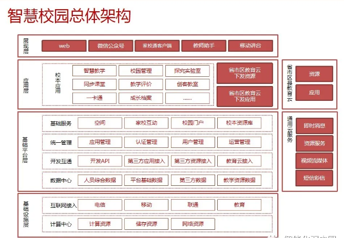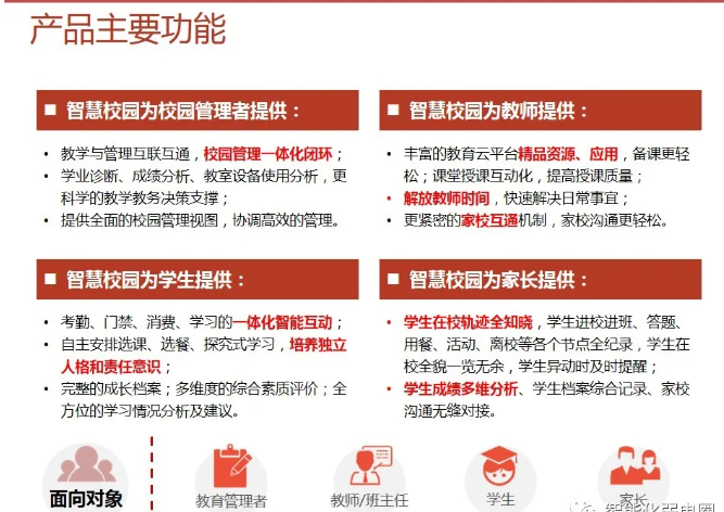一套完整的智慧校園解決方案,不僅僅是校園傳統(tǒng)的智能化弱電系統(tǒng)建設(shè),還包括智慧校園能為校園管理者、教師、學(xué)生、家長(zhǎng)等各類角色提供服務(wù)。