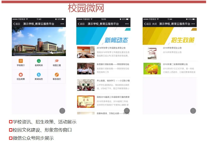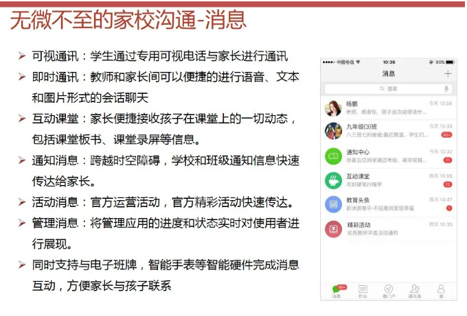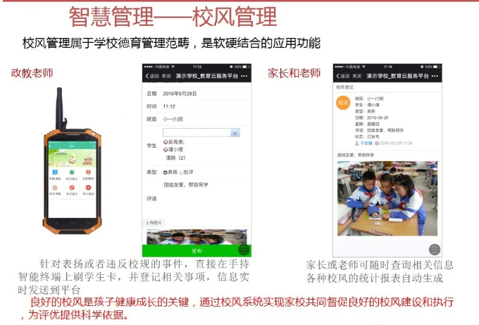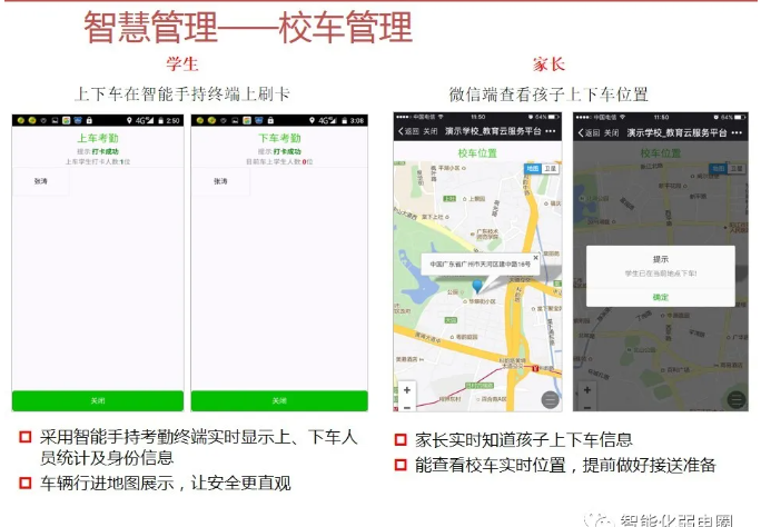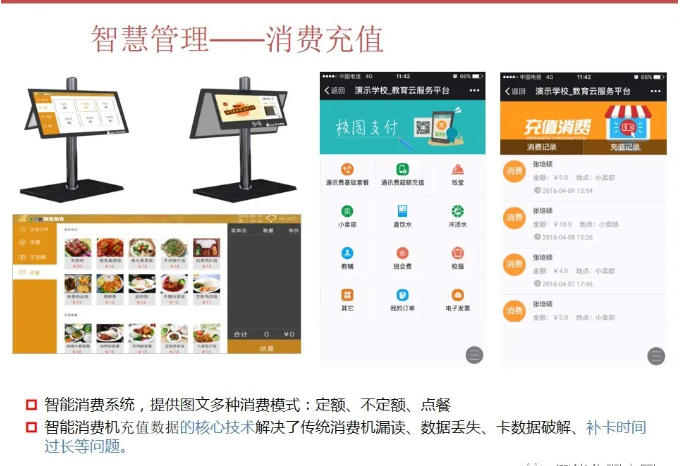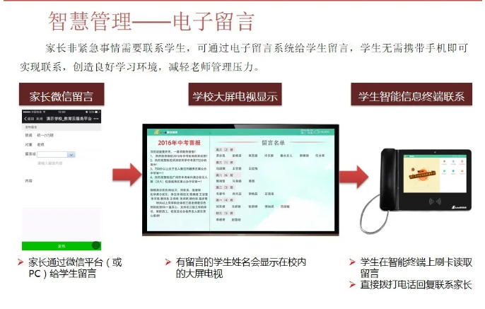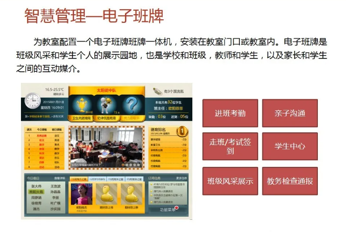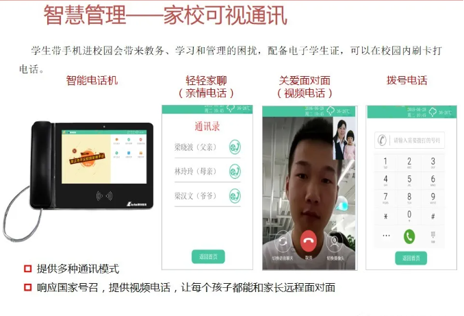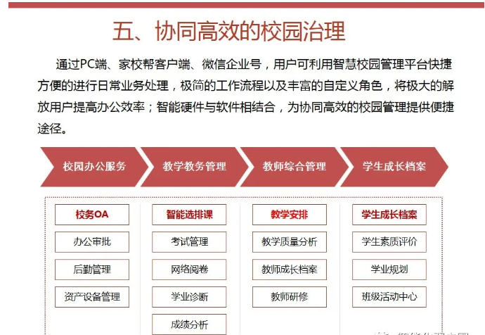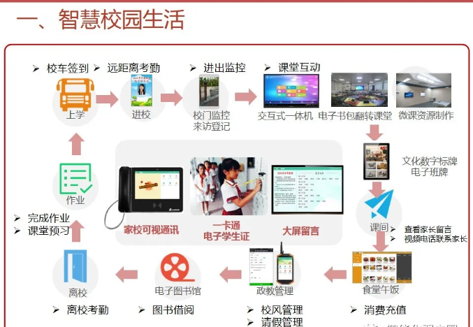 智慧校園為校園管理者提供,教學(xué)與管理互聯(lián)互通,校園管理一體化閉環(huán),學(xué)業(yè)診斷、成績(jī)分析、教室設(shè)備使用分析;為教師提供豐富的教育云平臺(tái),精品資源,備課更加輕松,更緊密的家?;ネC(jī)制;為學(xué)生提供考勤、門(mén)禁、消費(fèi)一體化智能互動(dòng),自主安排選課、選餐、探究式學(xué)習(xí),完整的成長(zhǎng)檔案,多維度素質(zhì)評(píng)價(jià);為家長(zhǎng)提供學(xué)生在學(xué)校軌跡知曉、學(xué)生進(jìn)校、進(jìn)班、答題、離校各個(gè)節(jié)點(diǎn)記錄;學(xué)生成績(jī)多維度分析,家校溝通無(wú)縫對(duì)接。