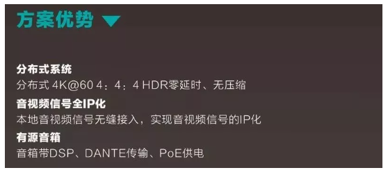貴賓接待室主要用于接待重要客人和會議中場休息時使用,因此需要滿足一般性的會議語言類的擴聲和視頻顯示的功能。當接待室作為大型會議休息場所時,需要滿足實時觀察到會場內的情況,鑒于此,接待室需要和會議室進行交互,音視頻信號的共享避免錯過會議的進程。