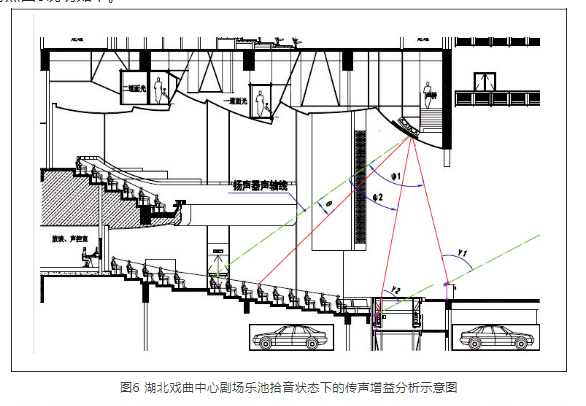 無論建聲設(shè)計(jì)還是擴(kuò)聲設(shè)計(jì),觀眾席特別是關(guān)鍵區(qū)域的直達(dá)聲和近次反射聲是重點(diǎn)分析的要素。在這一過程中,對于樂池中伴奏的拾音,處于揚(yáng)聲器覆蓋區(qū)或邊緣上,需要避免聲反饋的產(chǎn)生。