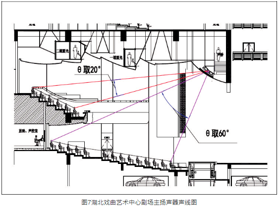 當(dāng)然,眺臺(tái)下空間與觀眾廳池座區(qū)的聲耦合也需引起注意,這里主要是依照聲學(xué)設(shè)計(jì)規(guī)范掌握好開口的深高比。