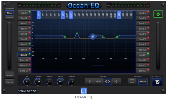 值得一提的是,此次演出使用的是HD96-24固件新版本,其中新增了通道(mid/side processing)中/側處理的128個立體聲(Dynamic EQs)動態均衡器池,能顯示效果器機架與動態處理池的DSP資源,以及效果器機架與動態處理池之間切換;它還新增了Ocean EQ效果器,允許以最小的相移進行復雜的頻譜變化,能減少對相位的影響。
