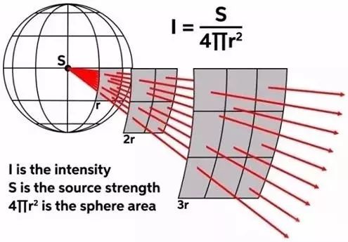 聲學中反平方定律的內容是,聲強度的大小和聽音位置與聲源之間距離呈平方反比。其結果是聽音者距離點聲源的距離每增加一倍,聲壓衰減6dB。這是我們通常情況下使用的揚聲器的表現,雖然實際和理論會有很多細微差別。