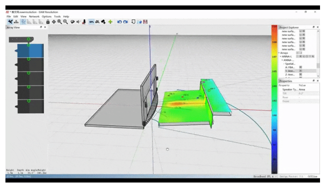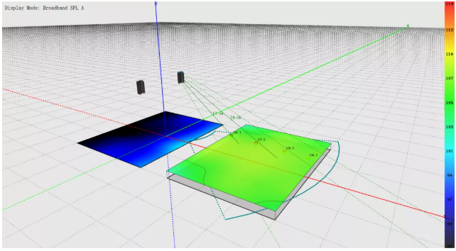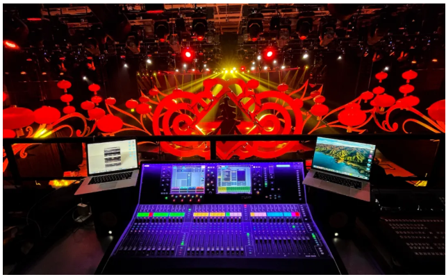 值得一提的是,這次春晚的舞臺是非常干凈的,無論是模擬預(yù)測,還是實地測量,都顯示出主擴系統(tǒng)對舞臺是幾乎沒有干擾的,聲壓級小且直達聲少,并且最終的實際聽感,主擴系統(tǒng)對舞臺的不良串音是極其微小的。