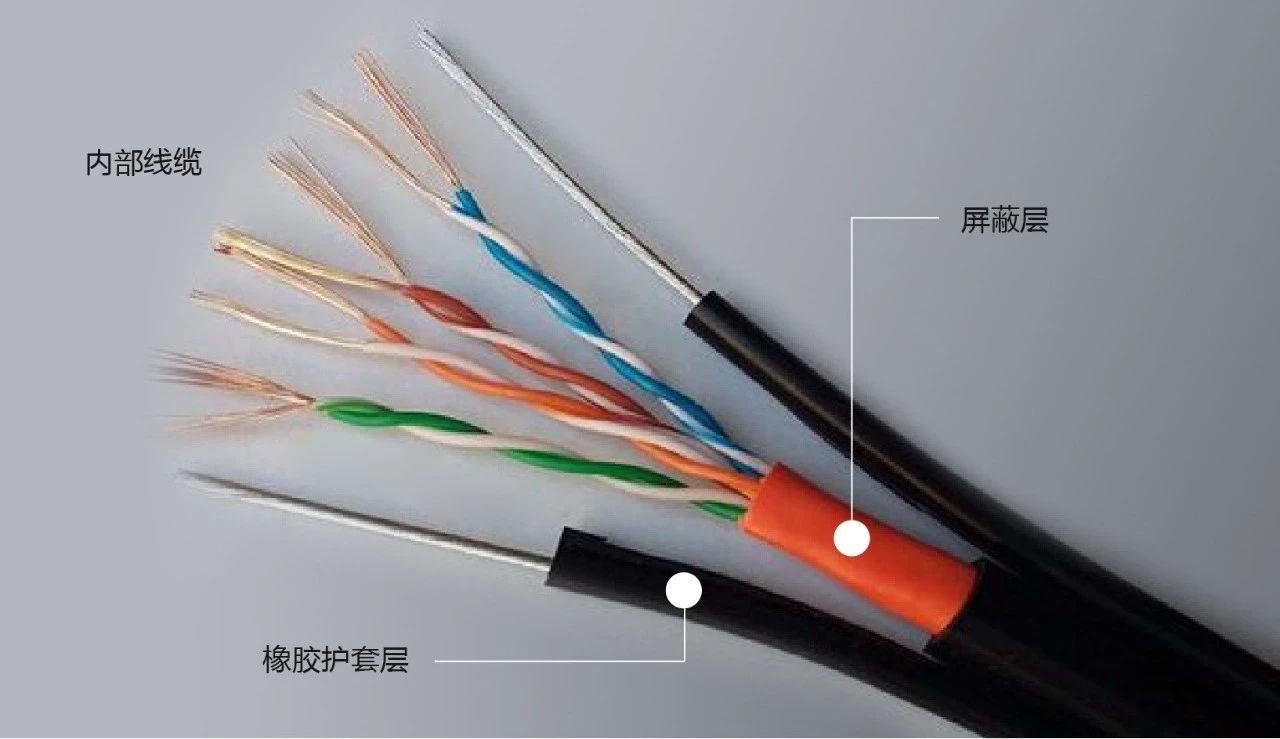 音頻信號纜的重量較大,通常纜的內部有一根鋼絲來增加抗拉強度。音頻信號纜多用于現場演出中周邊設備與功放的信號傳輸連接,音響工程中控制室至舞臺的信號連接。