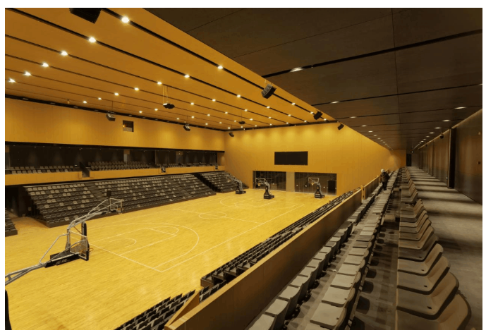 作為城市的文化名片,體育場館一如既往地將城市特色文化、實用性以及功能性完美的結合起來。場館在垂直向上進行疊加,布置了8大功能場館:游泳館、籃球場、羽毛球館、網球館、乒乓球館、擊劍館以及舞蹈室等多個專業賽事級別運動場地。不僅提供基本體育設施服務,還能滿足中小型賽事、體育運用與文化等多方面需求,同時,簡上體育綜合體在重塑城市精神和社區生活中扮演重要角色,滿足市民文化體育休閑娛樂健身等各項需求。 其中一層多功能綜合館,面積超過1200平方米,包含2000個坐席和3個籃球全場,可以承辦中小型賽事和活動。在擴聲系統的選擇上,面臨著場館層面積大,層高深,混響時間長,設備選擇需要滿足大聲壓級、高靈敏度、適合長距離投射和體積輕巧能減少高空懸掛的負荷,確保滿足極佳的指向性控制,保證音色的一致性,具備優異的安全性和穩定性。