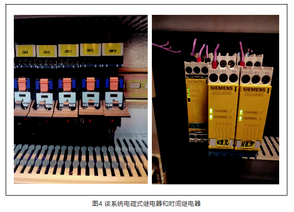 在舞臺機械電氣控制系統(tǒng)中,繼電器是其中必不可少的部件。繼電器的種類很多,通常分為保護繼電器和控制繼電器兩大類。該系統(tǒng)曾發(fā)生因繼電器損毀致使轉臺不能轉動的故障。該系統(tǒng)的電磁式繼電器和時間繼電器見圖4。