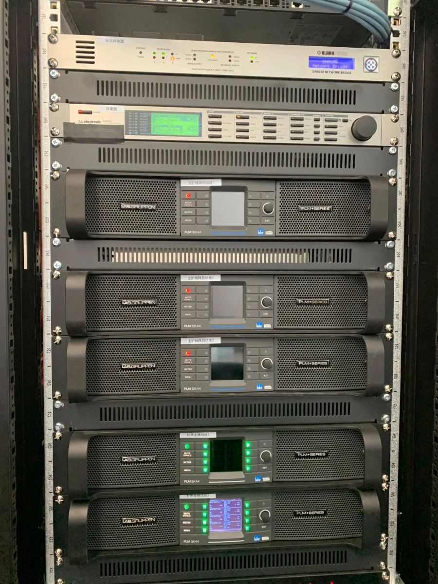 作為該音頻系統的功放。PLM+系列集合了頂級的Lake處理功能和Dante數字音頻網絡功能,擁有充足的音頻輸入口和監控現場音頻設備的功能,可以讓系統更好的運作,在減低損耗的同時還可以進行操作和監控。