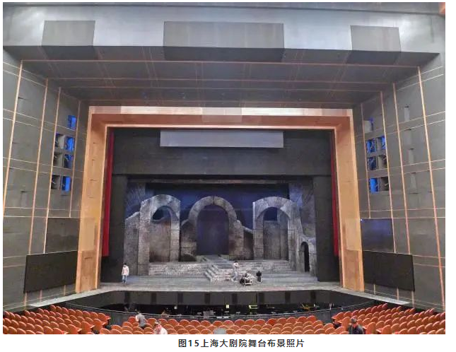 當(dāng)然并不是所有的歌劇場景都使用布景,而舞臺(tái)的體量比較大,如果不做吸聲處理,舞臺(tái)上的混響時(shí)間會(huì)非常大,既會(huì)影響歌手之間的相互聽聞,而且還會(huì)降低歌手唱詞的清晰度。因此在主舞臺(tái)上懸掛厚重的幕布和側(cè)后舞臺(tái)墻面上布置吸聲材料是很有必要的,目的就是降低舞臺(tái)空間的混響時(shí)間。